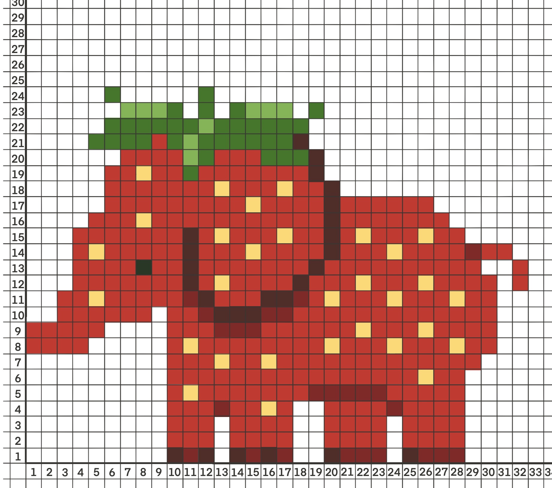 ドット絵 Strawberry Elephant(ストロベリーエレファント)|ドット絵 あいちゃん 2025年11月7日 アイロンビーズや刺繍などの図案として使えるドット絵です。画像をクリックすると元サイズの大きな画像を開くことができます。 ⭕️個人利用可・改変可・アレンジ可⭕️❌無断転載不可・自作発言不可・再配布不可・商用利用不可❌ 画像をクリックで拡大 刺しゅう布 『プリカットクロス フリーステッチ用 コットンクロス アイボリー 21700-35』 LECIEN ルシアン cosmo コスモ Amazon 楽天市場 Yahooショッピング 【送料無料】【お好みの色を備考欄にご記入ください】お買い得 DMC 刺繍糸 30本セット DMC 刺繍糸 25番 DMC 刺繍糸セット 刺しゅう糸 DMC刺繍糸 25番糸 刺繍糸セット 刺しゅう 初心者 まとめ買い クロスステッチ Amazon 楽天市場 Yahooショッピング brainrot Strawberry Elephant アイロンビーズ アクアビーズ ストロベリーエレファント ドット絵 ブレインロット 刺繍 図案